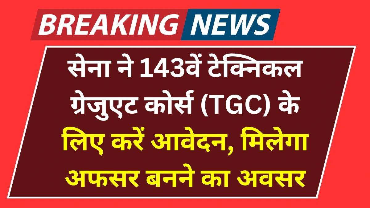 Indian Army TGC Recruitment: सेना ने 143वें टेक्निकल ग्रेजुएट कोर्स (TGC) के लिए करें आवेदन, मिलेगा अफसर बनने का अवसर